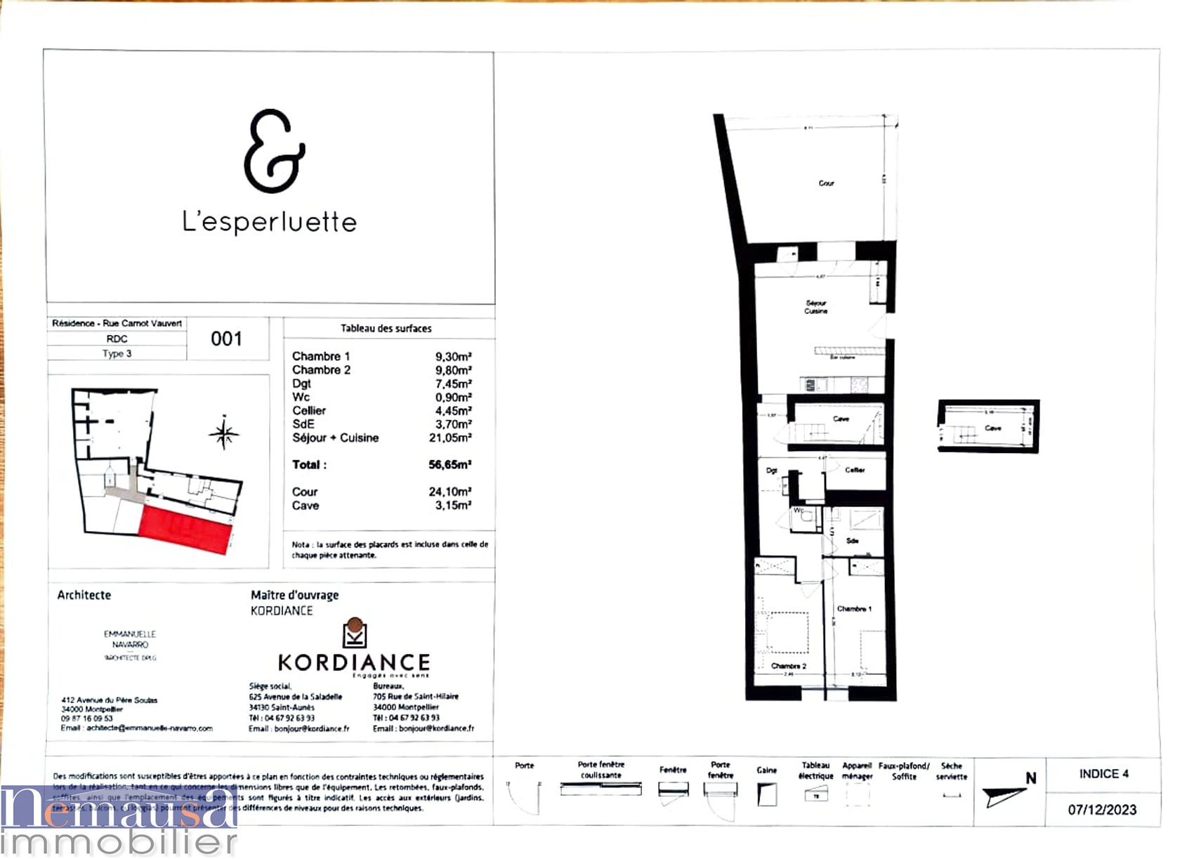 Venez découvrir ce bel appartement de 56.65 m2 au rez-de-chaussée d’une copropriété réhabilitée de 8 lots. Il se compose d’un séjour / cuisine donnant sur la cour de 24m2 d’un côté et de l’autre l’espace nuit, le dégagement vous donnera accès à une cave de 3.15 m2, d’un cellier de 4.45 m2, d’un WC, d’une salle d’eau de 3.70 m2 et des deux chambres de 9.30 et 9.80 m2, disposant de leur placard. Cet appartement rénové dispose de la climatisation dans le salon et du chauffage électrique individuel dans le reste des pièces.
