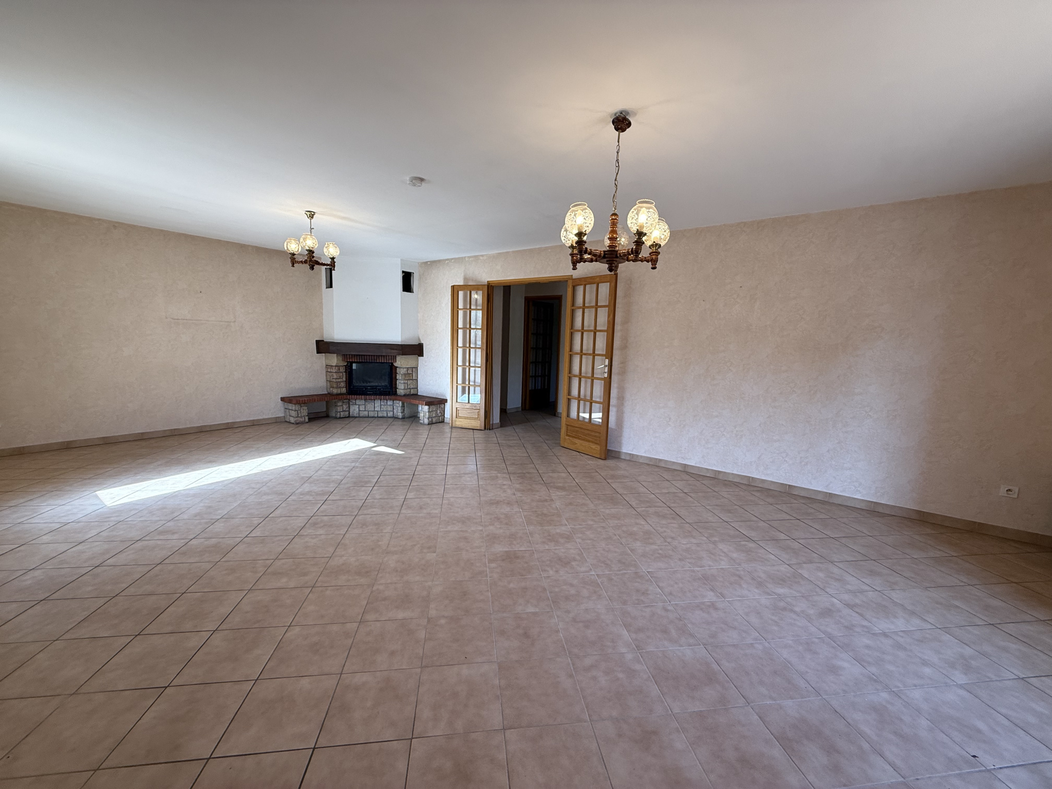 Maison construite en 1988 de 117m2 habitable, offrant une entrée menant à une cuisine fermée, avec possibilité d’ouverture sur le salon-séjour équipé d’un insert fonctionnel. Une buanderie/cellier donne accès au garage de 23m2 avec mezzanine.