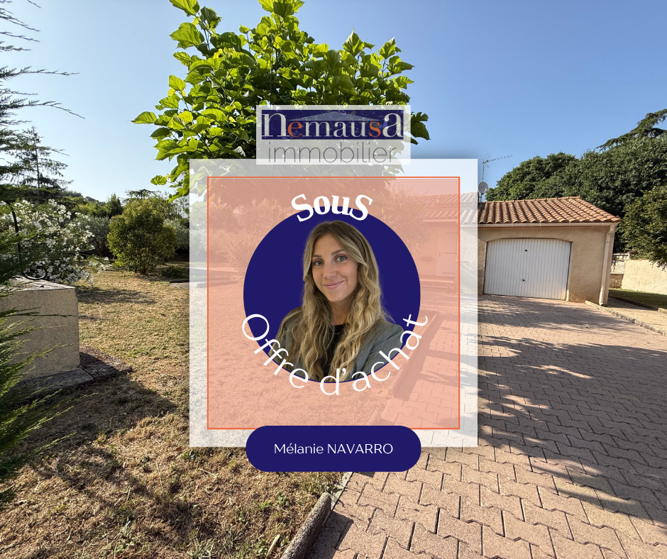 SOUS OFFRE – par Mélanie NAVARRO de l’agence NEMAUSA IMMOBILIER vous propose en exclusivité cette maison de plain-pied de type 4 non mitoyenne avec buanderie/cellier et garage sur une parcelle de plus de 1300m2 située sur les hauteur de Nîmes, Chemin des Limites, proche de la Tour Magne.