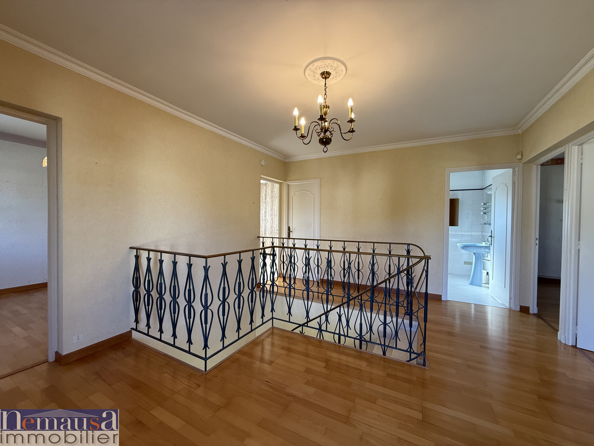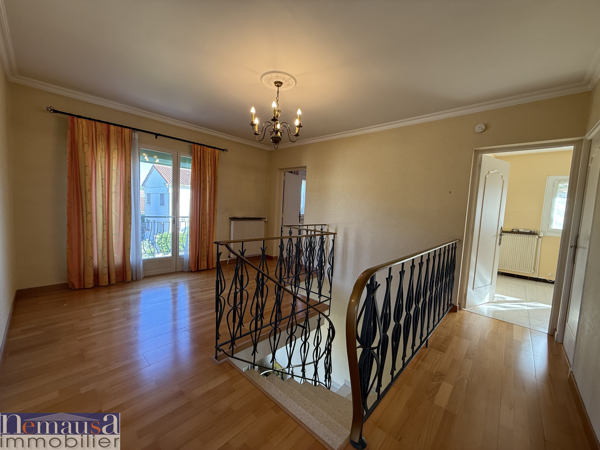 À l’étage, un palier avec accès à un grand balcon dessert quatre chambres avec placards, dont trois climatisées, une grande salle d’eau rénovée, équipée d’une douche récente, bidet, lavabo et fenêtre.