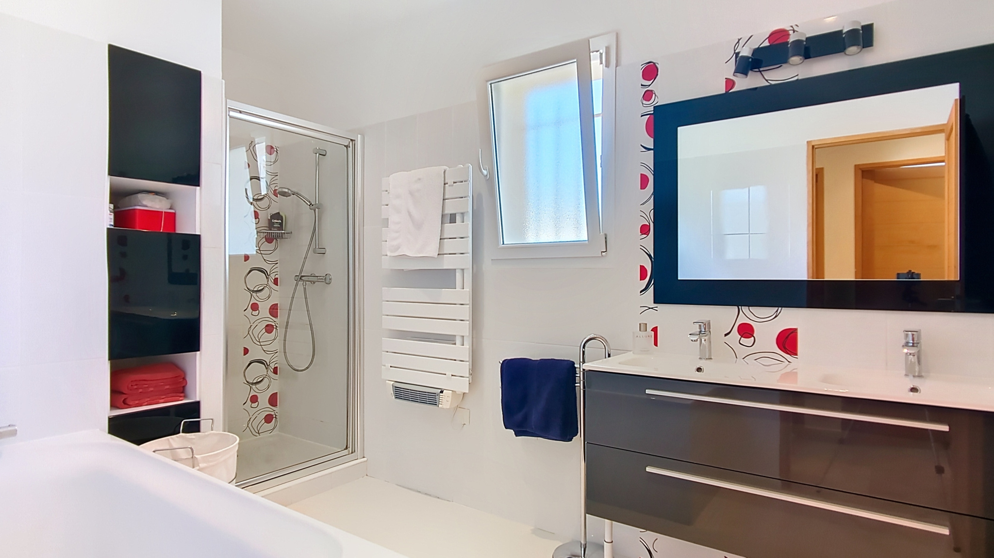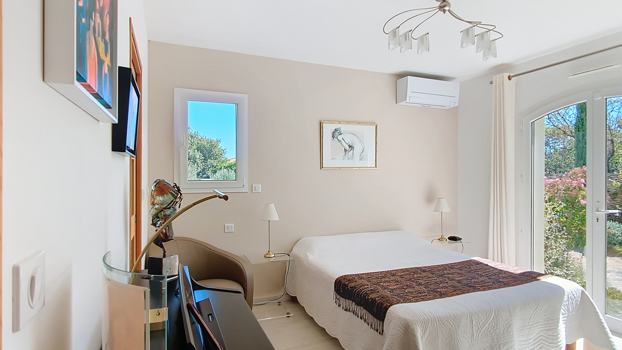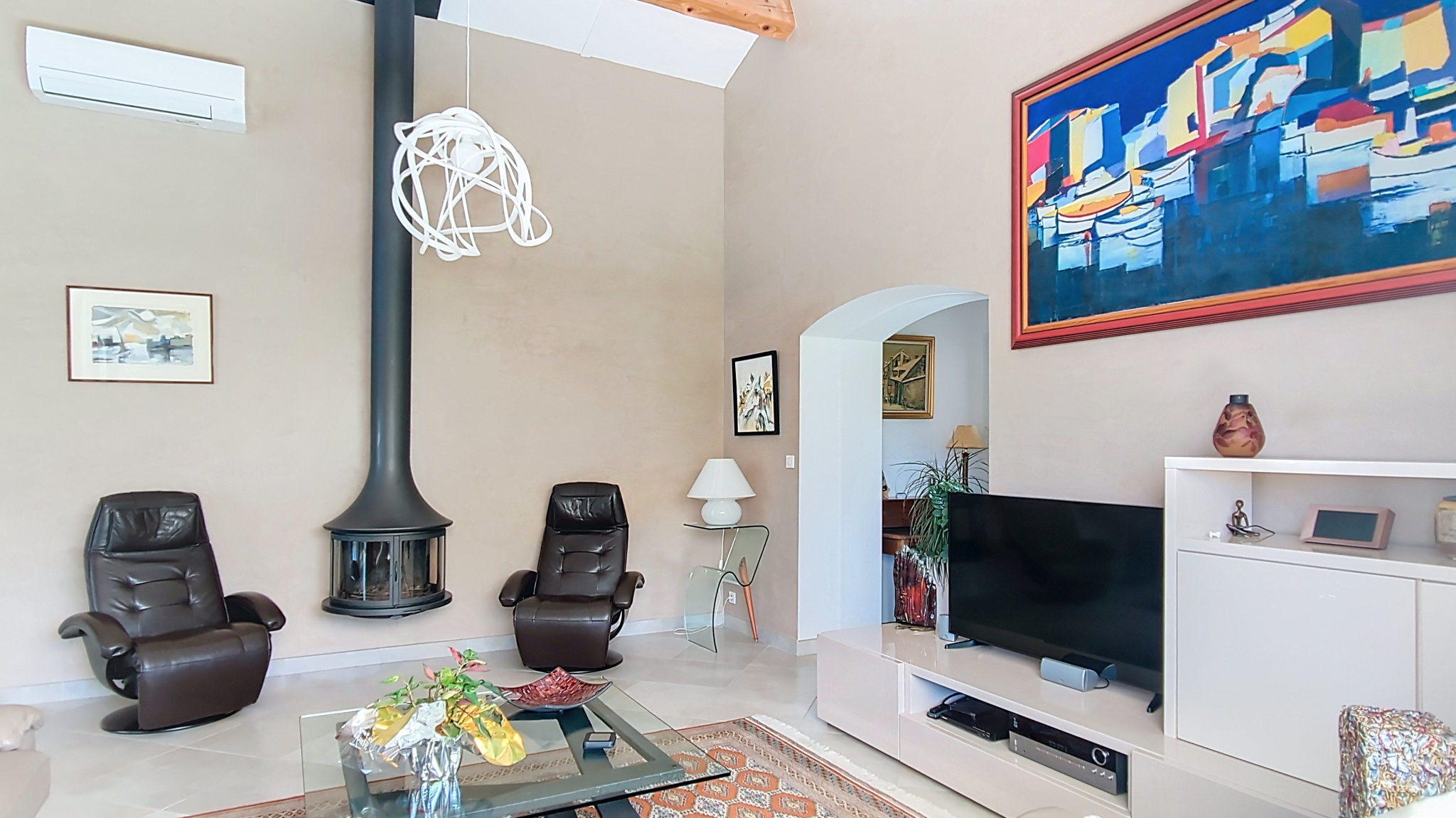 Concernant le mode de chauffage la maison est équipée d’un chauffage au sol basse température grâce à une pompe à chaleur thermodynamique récente, et de climatisations réversibles installées dans toutes les pièces, assurant un confort optimal en toute saison.