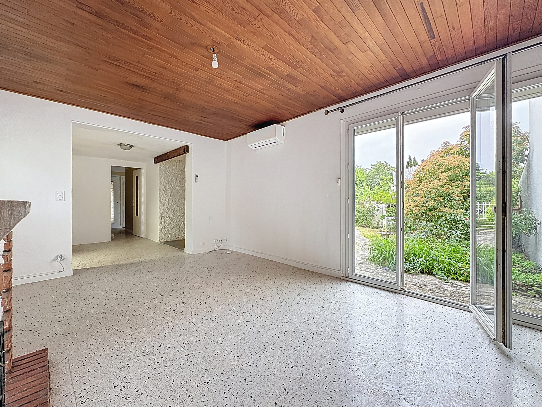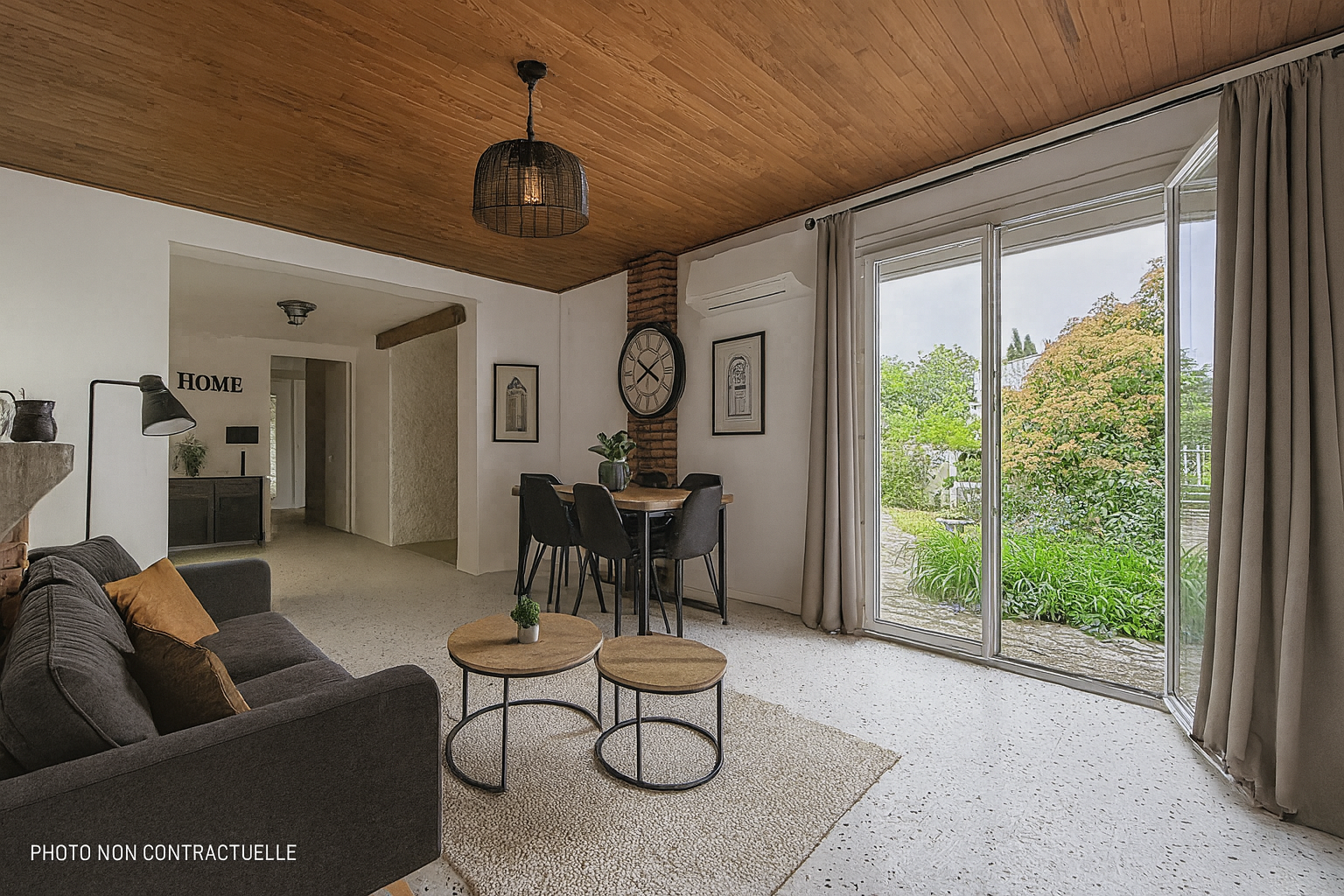 Nemausa immobilier vous présente à Nîmes, idéalement située dans le secteur du CHU Carémeau, une charmante maison de plain-pied d’une superficie de 75 m2. Cette maison, située dans un lotissement des années 70 et soumise au statut de la copropriété bénévole avec des charges annuelles de seulement 70 euros, vous séduira par sa pièce de vie conviviale et sa cheminée, qui s’ouvre sur un jardin intimiste, véritable atout sans aucun vis-à-vis et offrant un accès direct à un espace vert commun. La maison dispose d’une cuisine pratique, connectée à une buanderie et à un garage. Côté nuit, vous trouverez deux chambres paisibles avec vue sur le jardin, ainsi qu’une salle d’eau entièrement rénovée. Le bien est équipé de menuiseries double vitrage avec volets roulants électriques, de peintures refaites récemment et d’une climatisation pour votre confort.