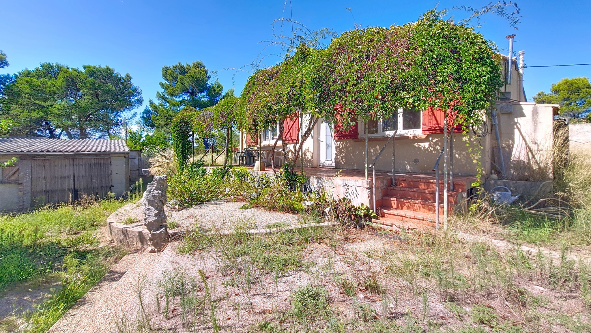Erigée sur un terrain de 1135 m2 en garrigue, cette propriété offre un cadre de vie exceptionnel, à l’abri des regards.