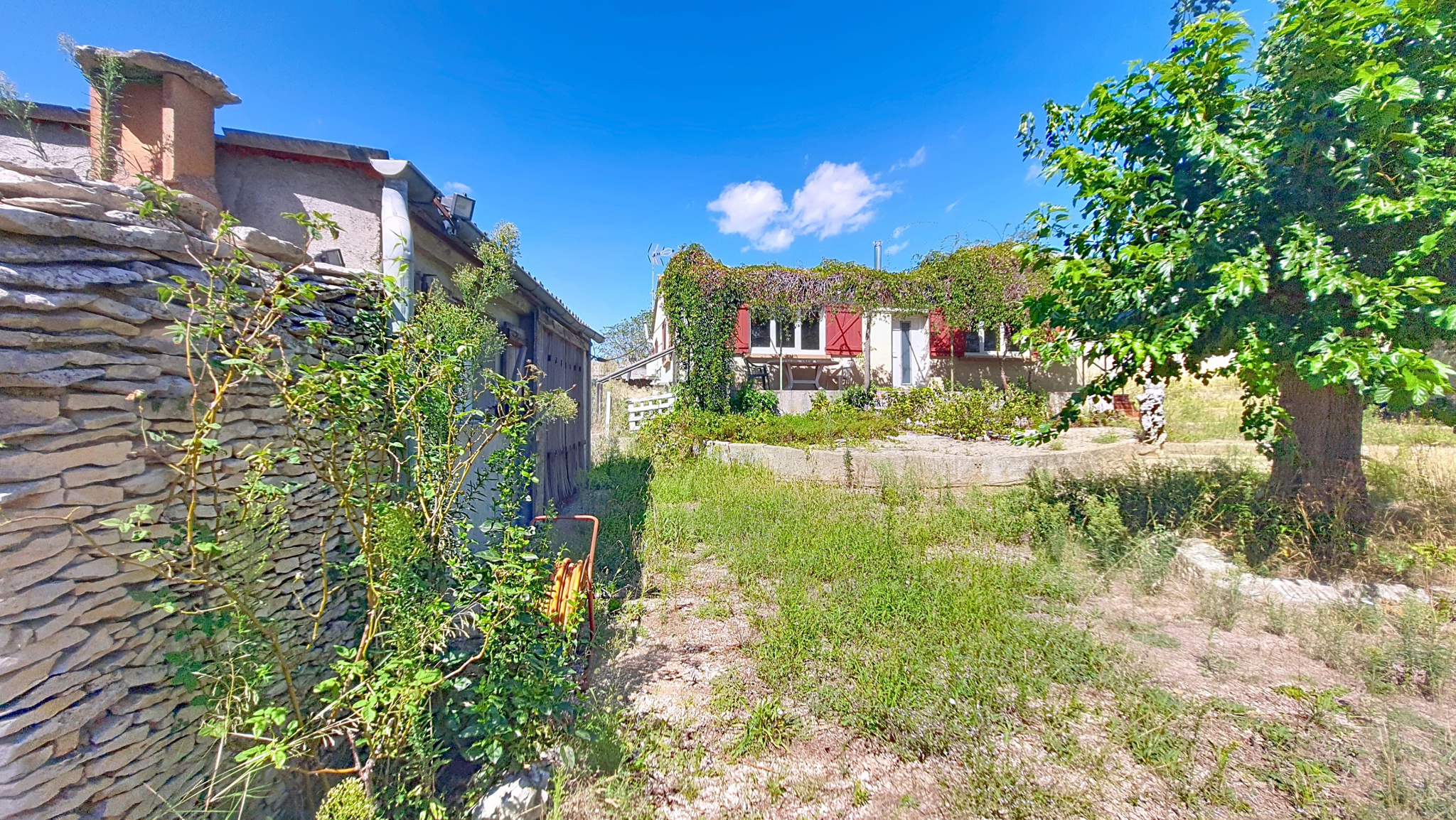 La maison dispose de 3 chambres, d’un séjour salle à manger, d’une salle d’eau , d’un wc, d’un garage et d’une petite dépendance.