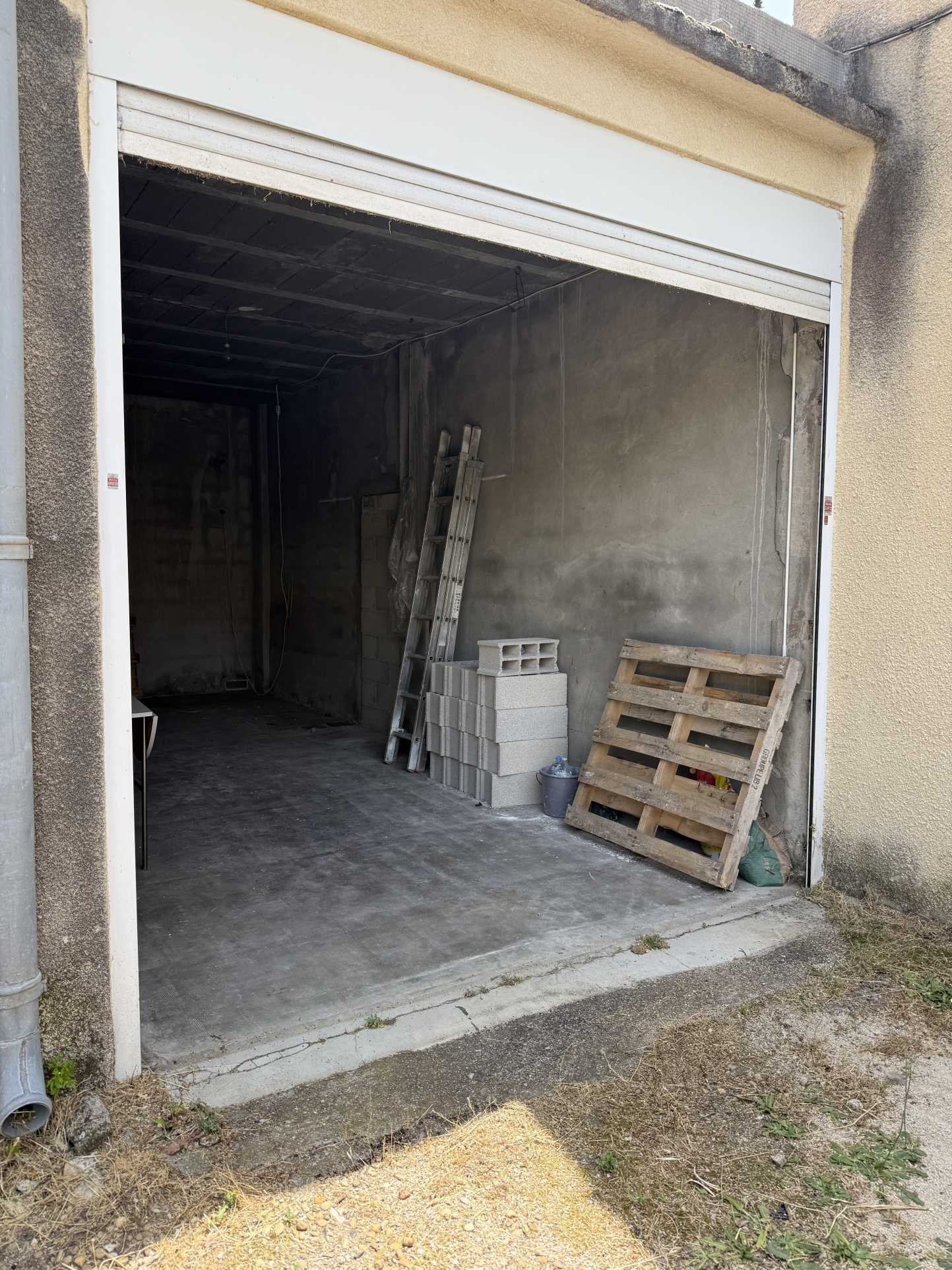La parcelle comprend actuellement un hangar de 75 m2 avec un bureau, dont la toiture est à refaire, ainsi qu’un garage de 20 m2 avec porte automatique.