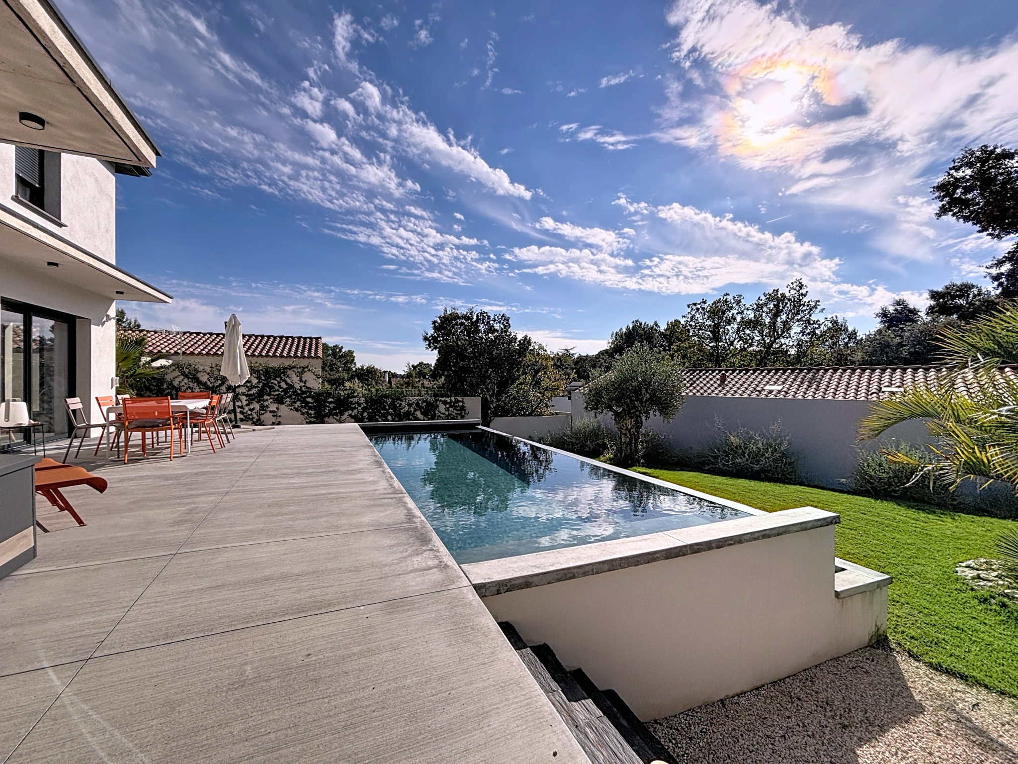 Venez découvrir cette villa contemporaine neuve située en bord de garrigue, situé a Parignargues à seulement 10 minutes de Nîmes. Cette maison moderne allie design épuré, prestations haut de gamme et environnement exceptionnel.
