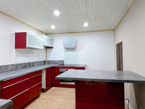 Étage : une cuisine séparée, un séjour lumineux avec cheminée, une grande chambre ainsi qu’une salle d’eau avec WC.