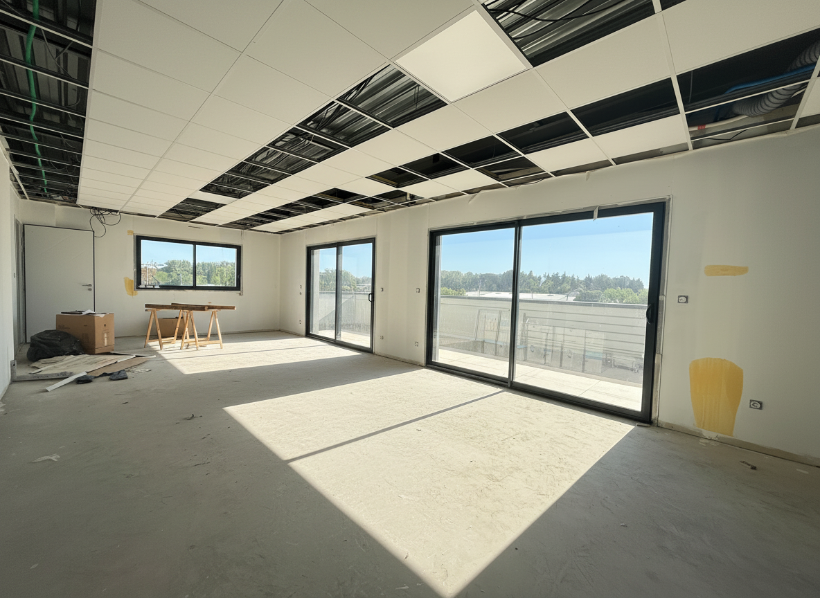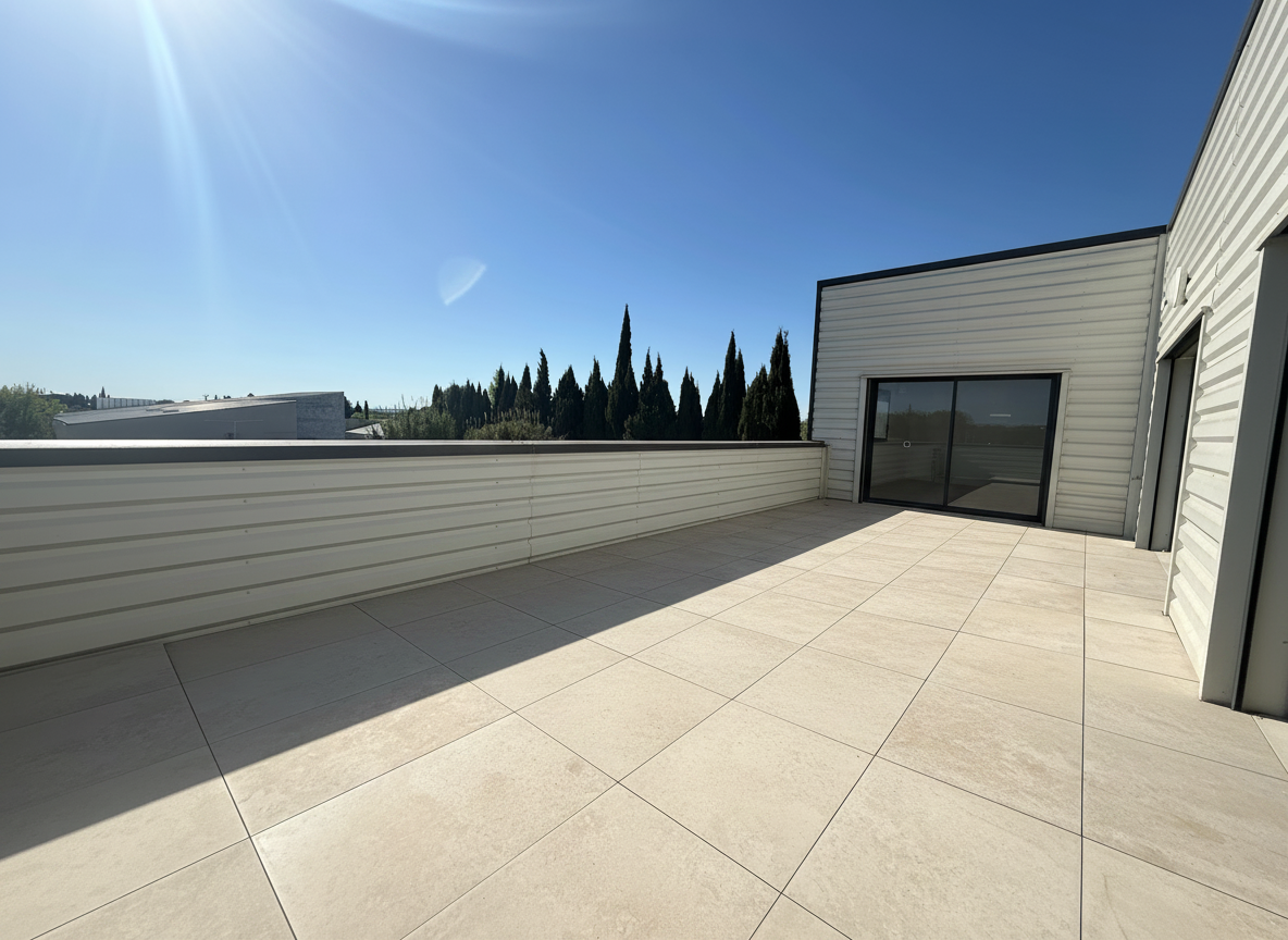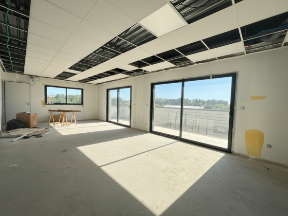 Découvrez ces nouveaux bureaux situés au 1er étage, accessibles par ascenseur, d’une surface totale de 110 m2. Ils se composent d’une pièce principale climatisée ouvrant sur une terrasse de 40 m2, de deux grands bureaux également climatisés, d’une salle d’archives, ainsi que d’une salle d’eau et WC séparé.