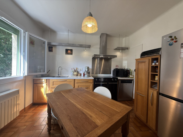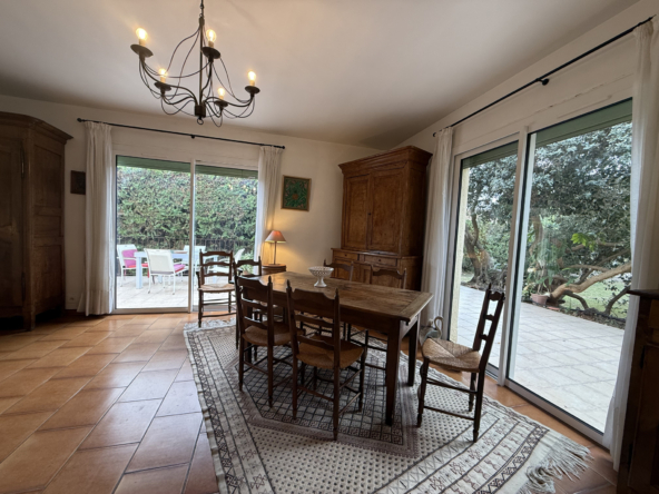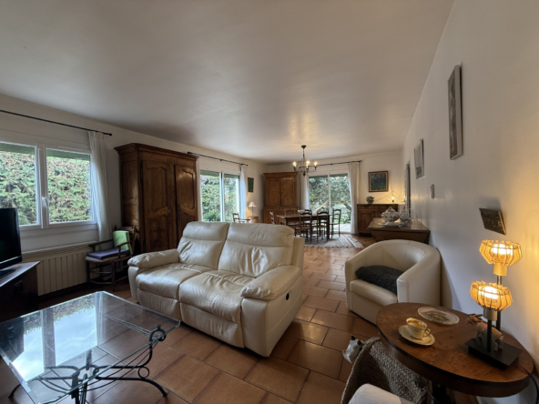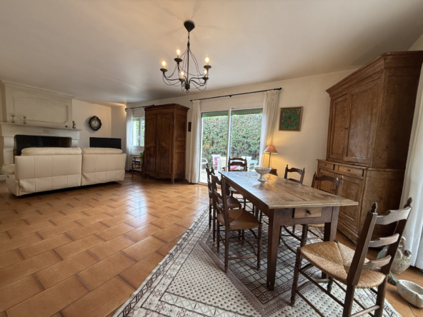 À l’extérieur, un agréable jardin arboré avec arbres fruitiers, d’une vaste terrasse de 55 m2 équipée de deux stores électriques, d’un atelier (anciennement garage) et d’un carport.