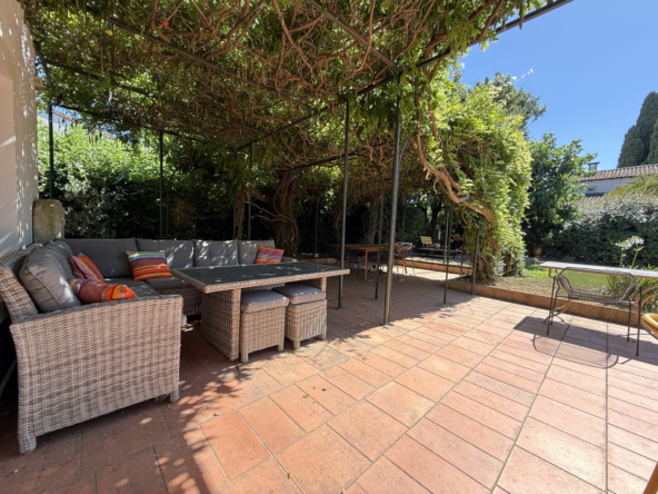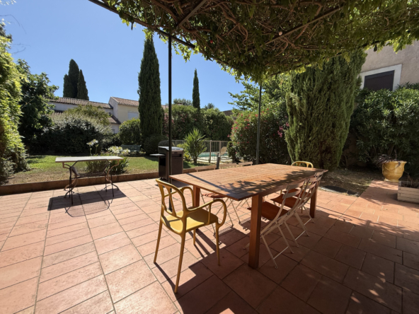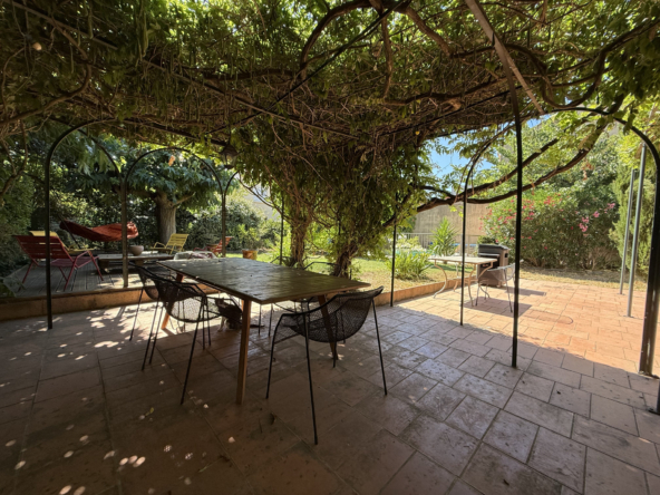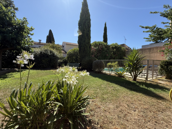 Le jardin, soigneusement entretenu, dispose d’un système d’arrosage automatique pilotable à distance. Une piscine au sel de 4 x 8 m, entièrement automatisée, avec bâche à bulles et volet roulant électrique, vous permettra de profiter des beaux jours. Deux terrasses ombragées par des pergolas couvertes de glycine complètent l’ensemble.