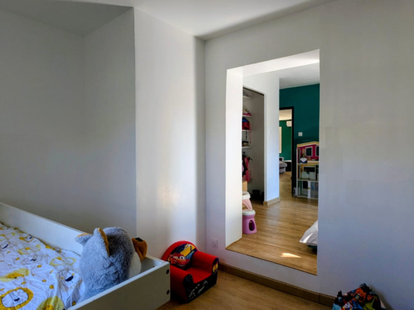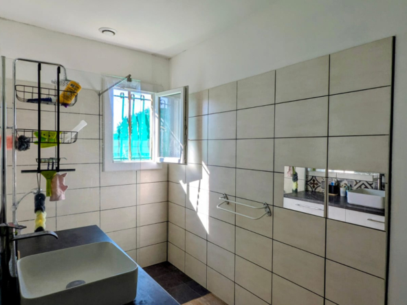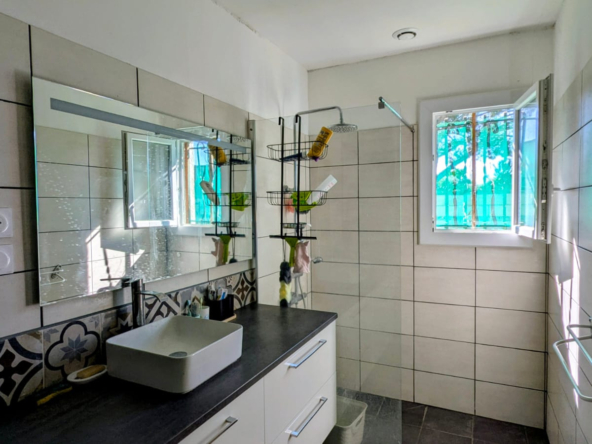 Un dégagement dessert ensuite une salle d’eau moderne et un WC séparé.