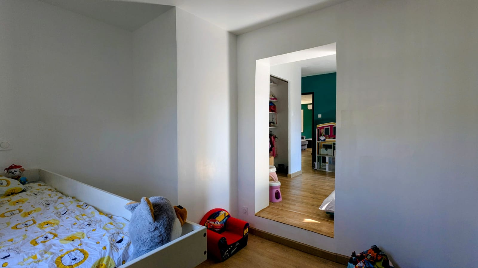 Une chambre double offrant deux espaces distincts, idéale pour créer un coin nuit et un bureau, une salle de jeu ou un grand espace unique ou deux chambres séparées.