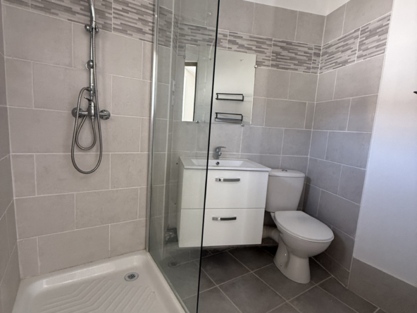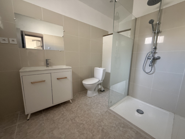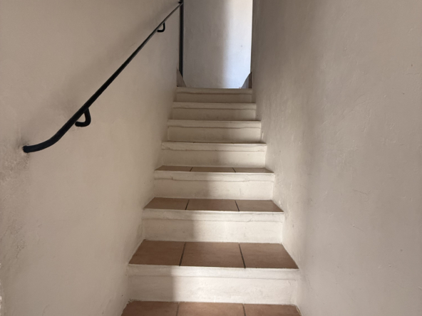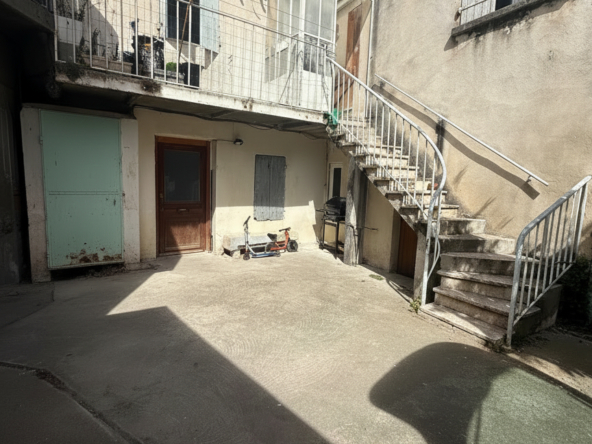 1er logement au fond de la cour (86,47 m2 sur 2 niveaux) : Il se compose au rez-de-chaussée d’une cuisine, d’une salle d’eau avec WC, ainsi que d’un salon équipé d’une climatisation récente. À l’étage deux chambres avec radiateurs neufs, et une suite parentale avec dressing et salle d’eau avec WC. À l’extérieur: terrasse privative. Loyer : 985 € dont 15 € de charges (TOM et électricité des communs)