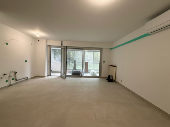 Situé au 1er étage avec ascenseur, l’appartement se compose d’une entrée avec placard, d’une cuisine ouverte sur le séjour équipé d’une climatisation réversible, donnant sur une véranda avec vue sur un jardin, d’une chambre avec placard, d’un WC indépendant ainsi que d’une salle d’eau avec emplacement pour machine à laver.
