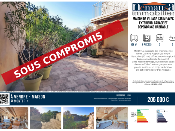 Nemausa Immobilier, 3 agences spécialisées sur Nîmes et sa région, Transactions, Locations, Gestion Locative, maisons, appartements, terrains, locaux commerciaux & fonds de commerce. Siret 819500380, CPI 30022016000006029, enregistrée au RCS de Nîmes. Les informations sur les risques auxquels ce bien est exposé sont disponibles sur le site Géorisques : www.georisques.gouv.fr.