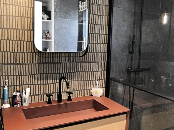 Le système de chauffage et assuré par une climatisation gainable Air zone et d’une cheminée à l’éthanol.