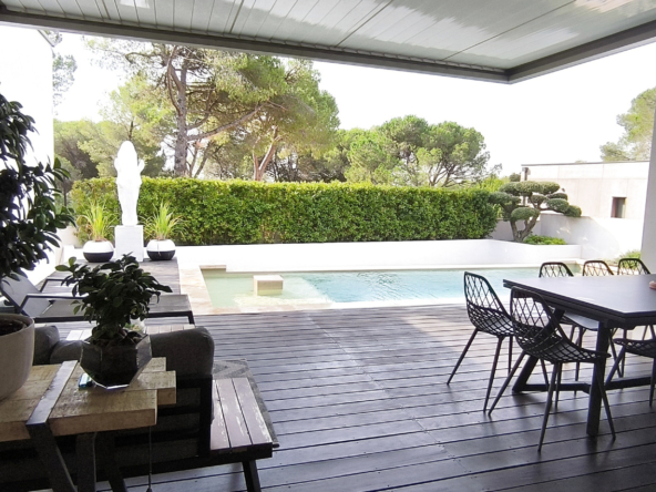 Nous sommes ravis de vous présenter cette somptueuse propriété contemporaine, idéalement située sur la commune de Nages et Solorgues. Érigée sur une parcelle de 1036 m2, cette maison offre un cadre de vie exceptionnel, alliant confort, élégance et tranquillité.
