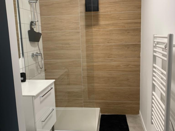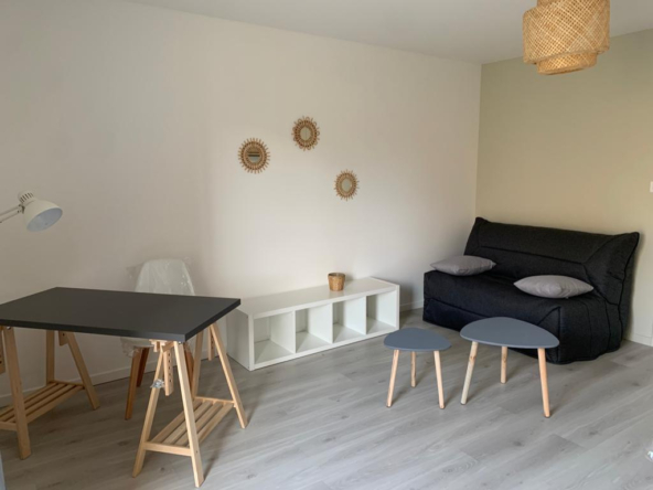 L’appartement a été entièrement refait à neuf. Situé au 1er étage d’une petite copropriété de 6 lots, il est composé d’une pièce à vivre avec un canapé couvertible, un espace bureau et une cuisine entièrement équipée et aménagée, une chambre avec placard et une salle d’eau avec toilette. Au rez-de-chaussée de la copropriété une cour commune et un local à vélo.