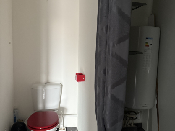 Le bien se compose d’une entrée avec placard, d’un spacieux WC intégrant l’emplacement du ballon d’eau chaude (neuf), d’une salle de bains, ainsi que d’une cuisine aménagée ouverte sur le séjour, donnant accès à une terrasse couverte, une chambre.