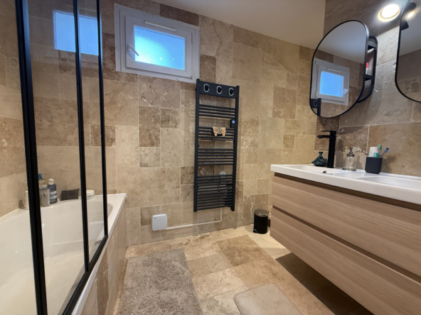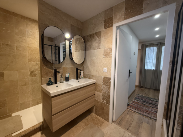 En rez-de-chaussée, un garage privatif de 17 m2 complète le bien (porte de garage neuve, prise Green’Up installée). Prestations complémentaires : double vitrage sur l’ensemble des menuiseries, volets bois, fibre installée.