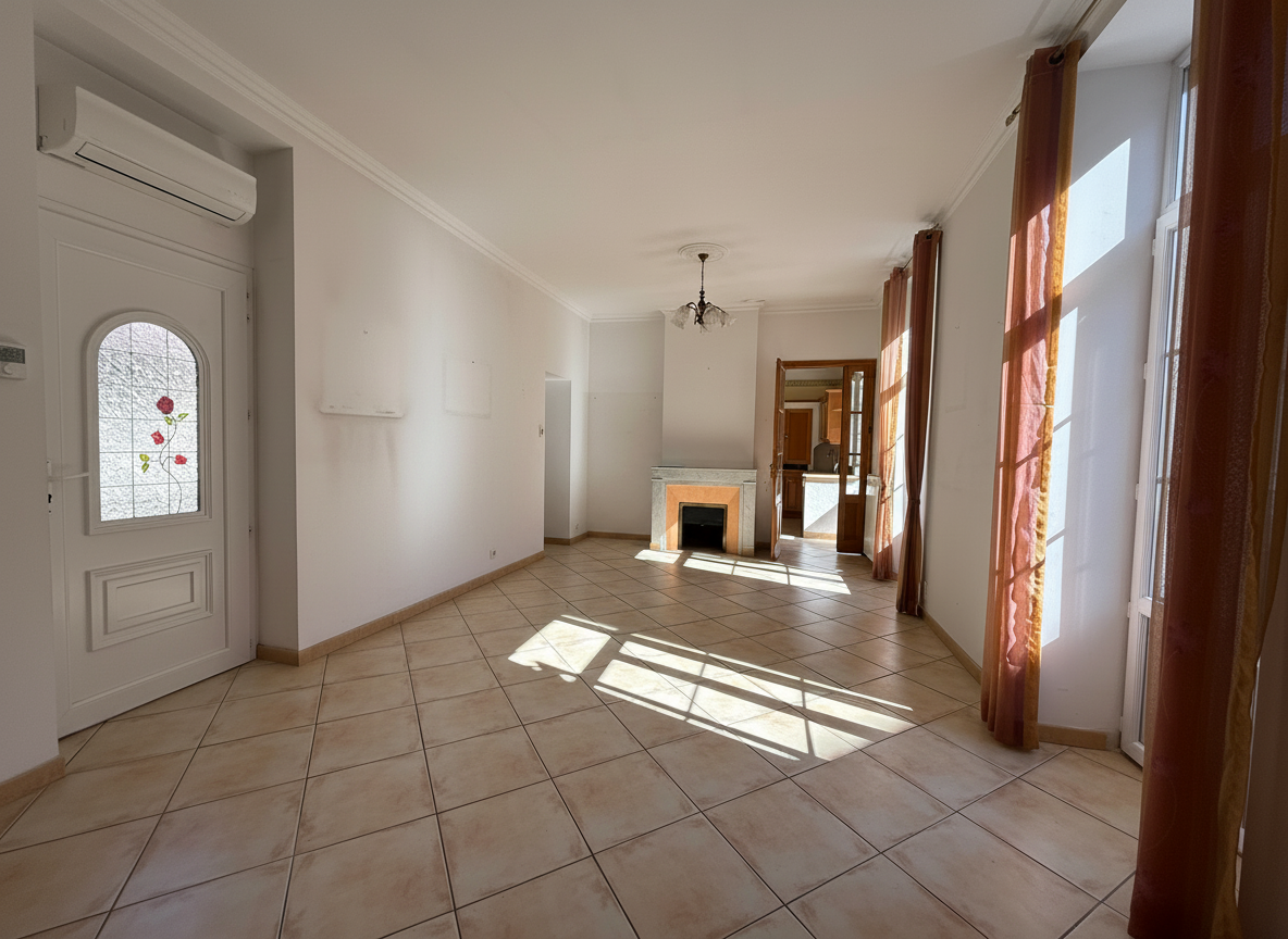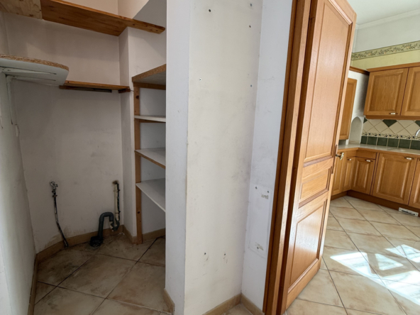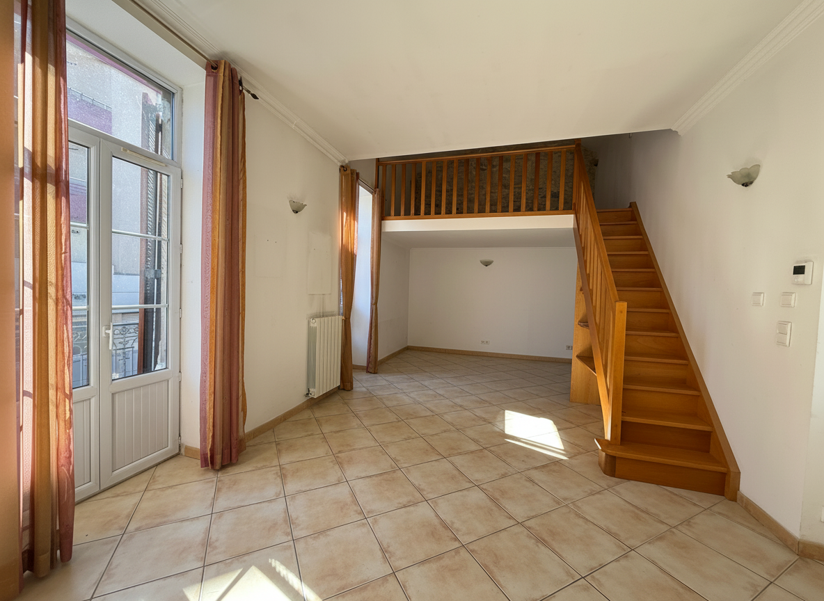 Au 1er étage, vous trouverez un salon/salle à manger ouvrant sur un balcon, équipé d’une climatisation réversible et d’une cheminée condamnée, avec une mezzanine. La cuisine est indépendante et donne accès à un cellier/buanderie.