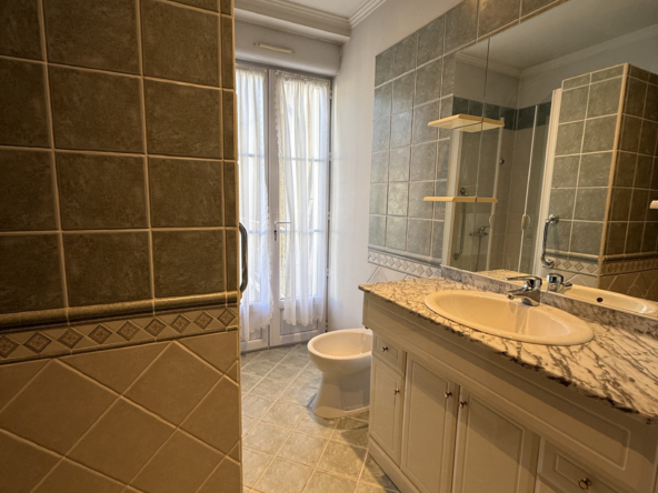 Un couloir avec rangement dessert une salle d’eau, des toilettes séparés ainsi qu’une grande chambre avec accès à un second balcon côté cour. Le bien bénéficie du double vitrage, aspiration centralisée, radiateur au gaz.