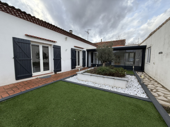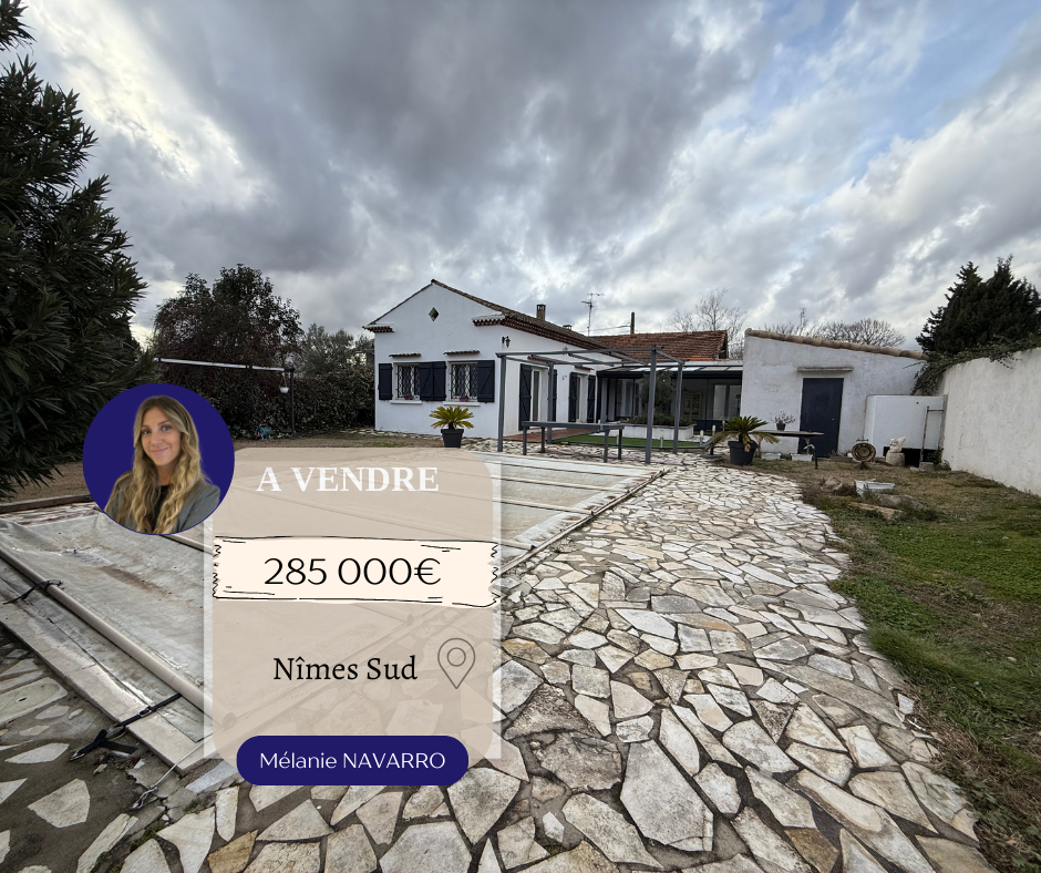 Mélanie NAVARRO de l’agence NEMAUSA IMMOBILIER vous propose cette maison à la vente de type 6 de 151m2 habitable de plain-pied avec véranda, jardin, double garage et piscine sur une parcelle de plus de 750m2.