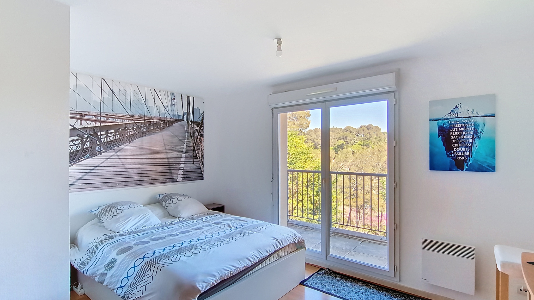 À l’extérieur, vous profiterez d’un petit espace à aménager selon vos envies, de deux places de parking privatives, et pourrez bénéficier de la piscine collective de la résidence.