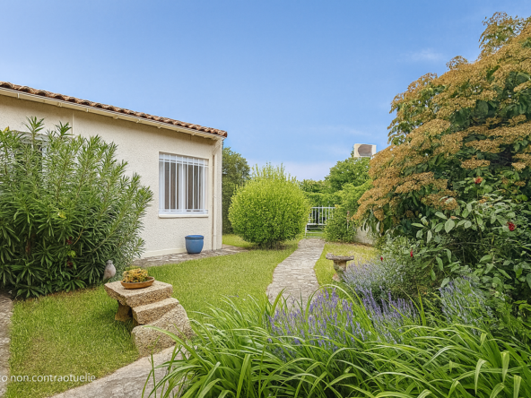 Nemausa immobilier vous présente à Nîmes, idéalement située dans le secteur du CHU Carémeau, une charmante maison de plain-pied d’une superficie de 75 m2. Cette maison, située dans un lotissement des années 70 et soumise au statut de la copropriété bénévole avec des charges annuelles de seulement 70 euros, vous séduira par sa pièce de vie conviviale et sa cheminée, qui s’ouvre sur un jardin intimiste, véritable atout sans aucun vis-à-vis et offrant un accès direct à un espace vert commun. La maison dispose d’une cuisine pratique, connectée à une buanderie et à un garage. Côté nuit, vous trouverez deux chambres paisibles avec vue sur le jardin, ainsi qu’une salle d’eau entièrement rénovée. Le bien est équipé de menuiseries double vitrage avec volets roulants électriques, de peintures refaites récemment et d’une climatisation pour votre confort.