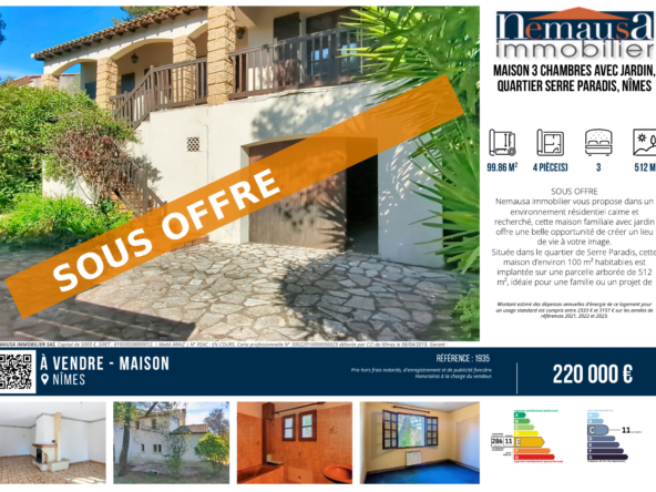 Nemausa immobilier vous propose dans un environnement résidentiel calme et recherché, cette maison familiale avec jardin offre une belle opportunité de créer un lieu de vie à votre image.