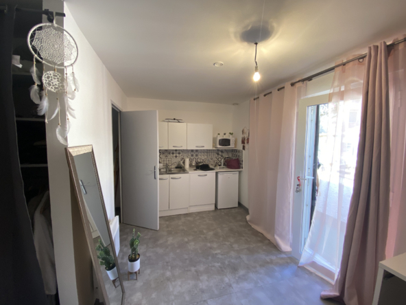 NEMAUSA IMMOBILIER vous propose à Nîmes, dans le secteur Etudiants de Saint Césaire, un joli studio entièrement révové de 22 m2. Il est composé d’une pièce principale, d’un coin kitchenette, d’une salle d’eau avec WC. Possibilité de garer un véhicule dans la cour commune.