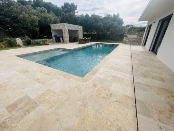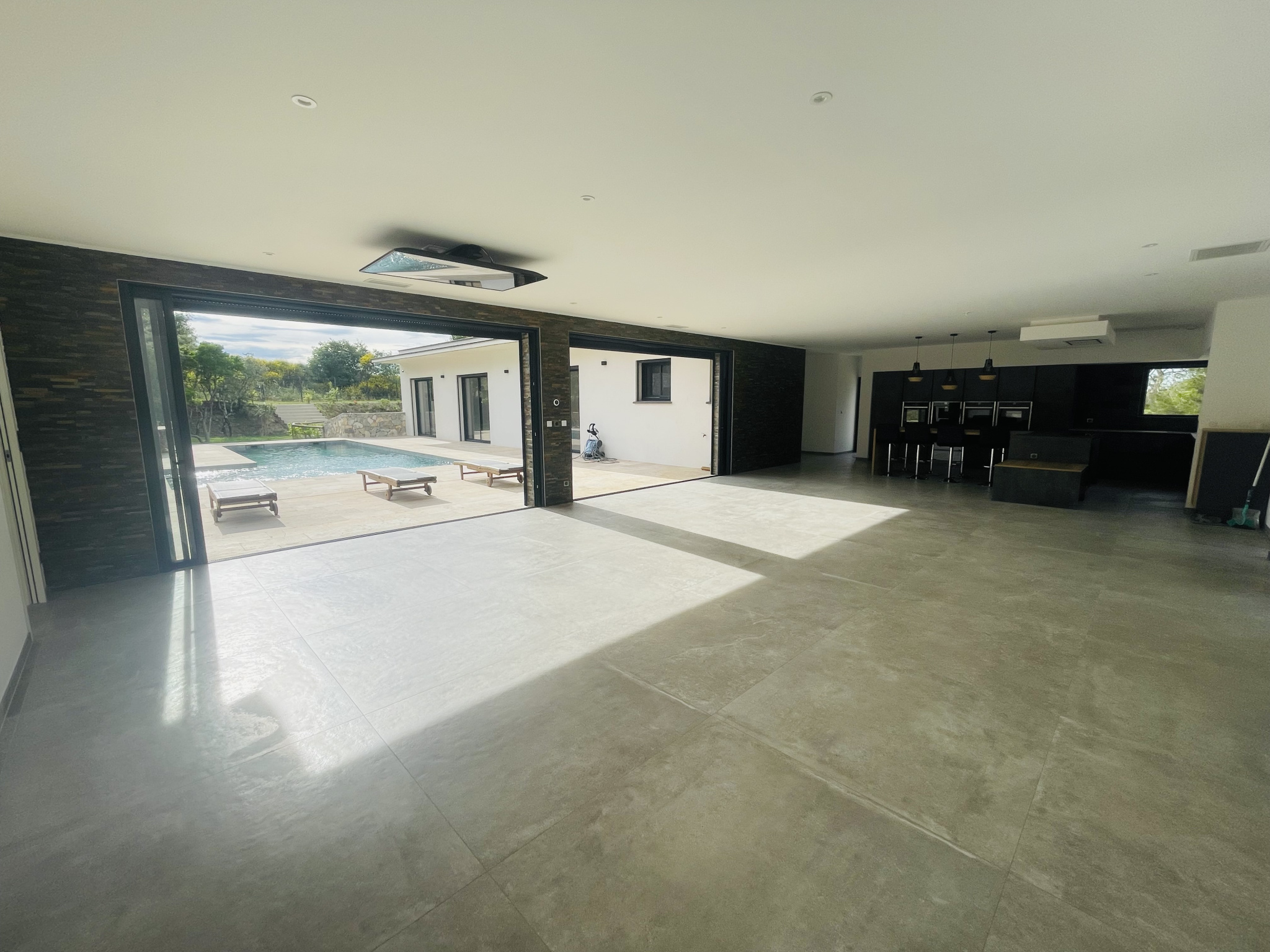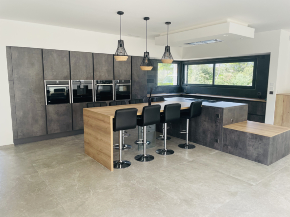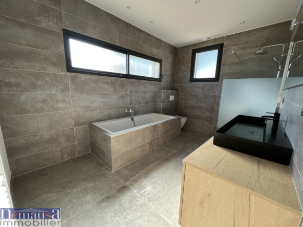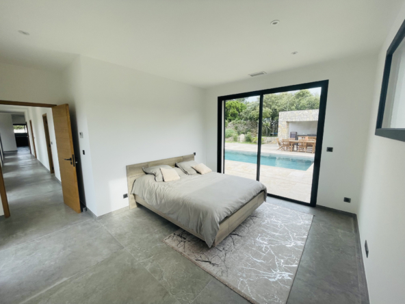 Construite en 2022, cette villa spacieuse s’étend sur une superficie habitable de 338 m2. Dès votre entrée, vous serez séduit par un vaste séjour salle à manger de 100 m2, baigné de lumière naturelle, agrémenté d’une cuisine Nef entièrement équipée. Les grandes baies vitrées à galandage vous permettent de profiter à un accès direct à une magnifique terrasse.