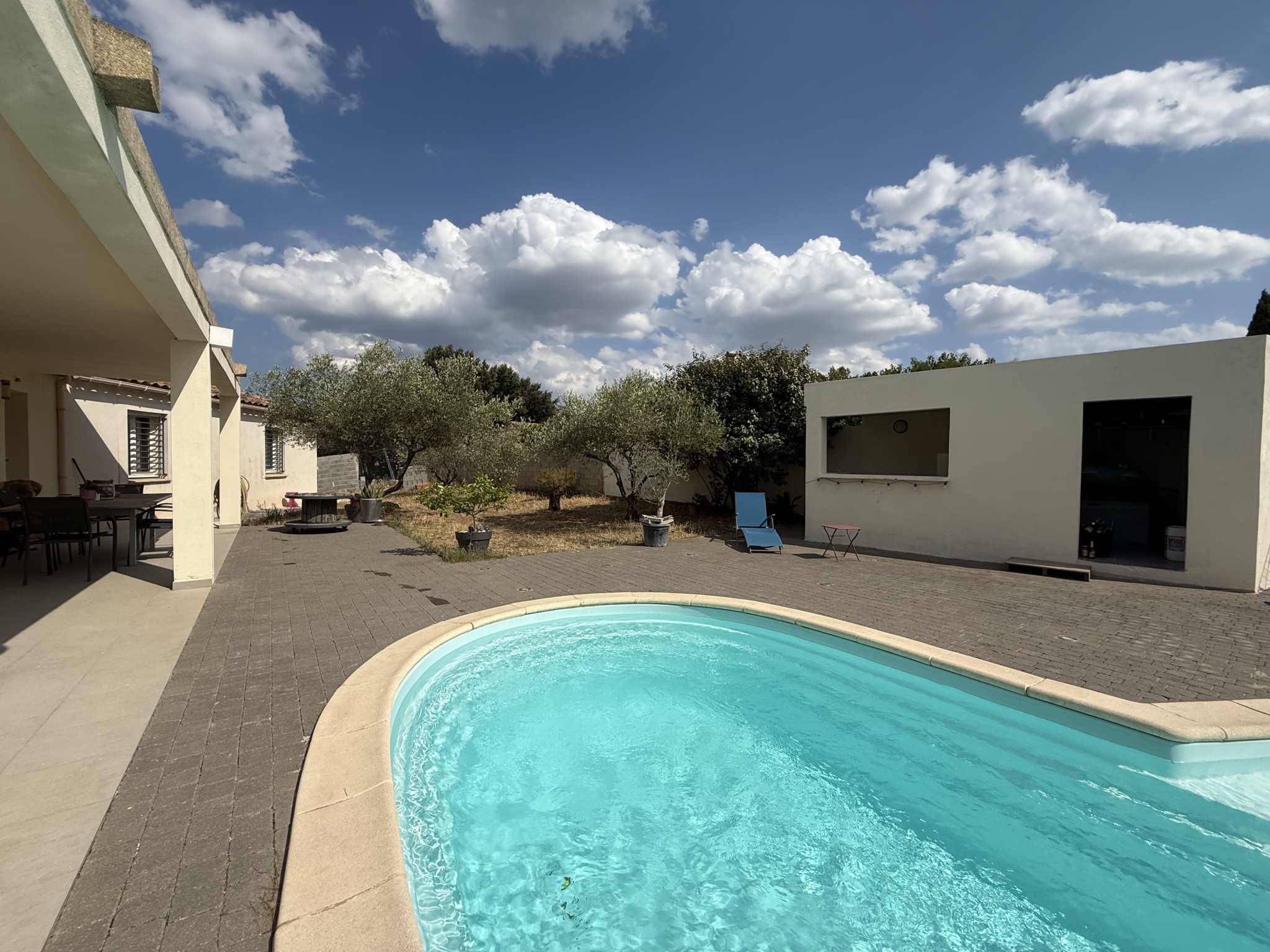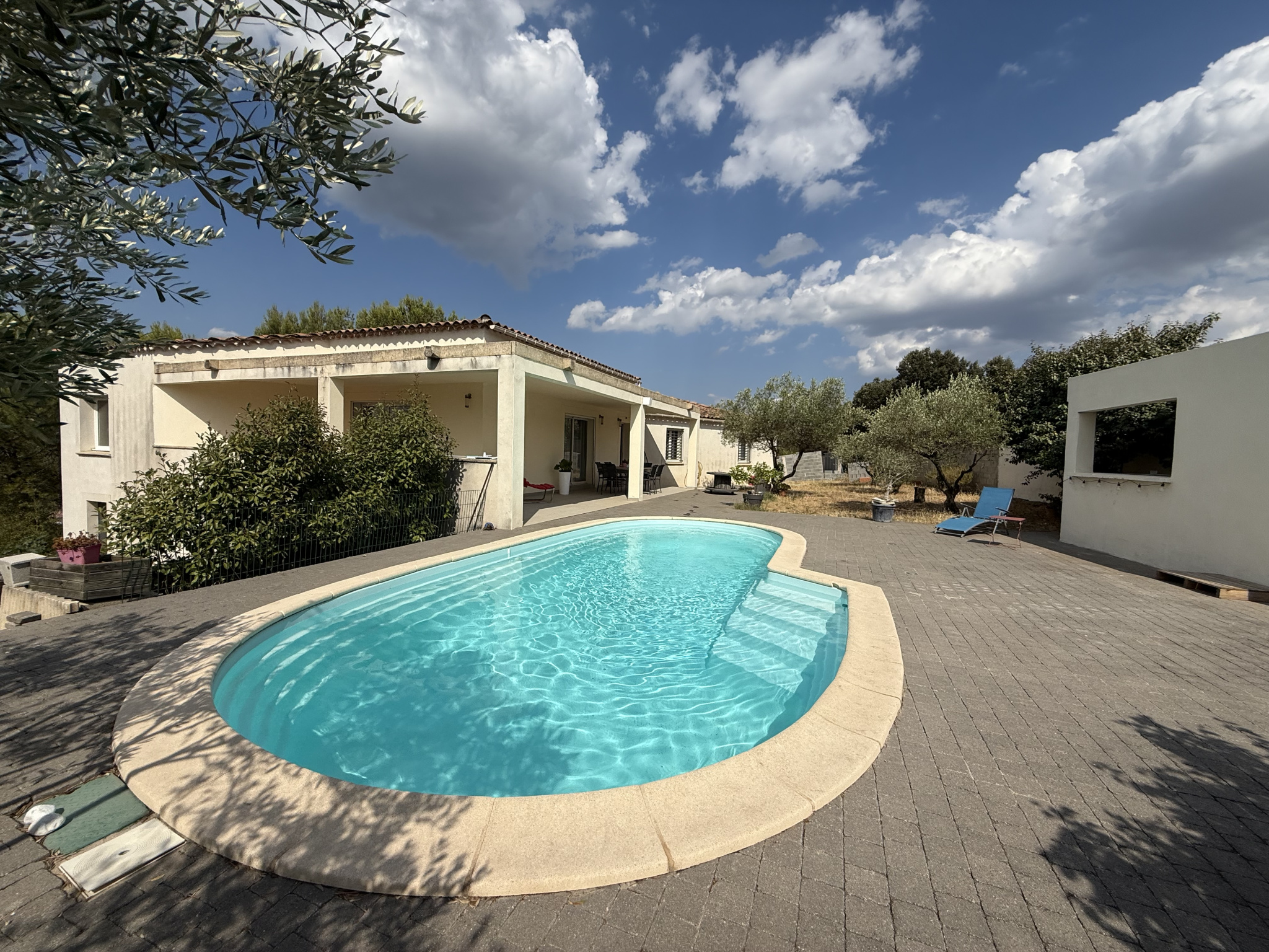 Maïté ARAIZ vous propose en exclusivité cette magnifique villa de 183 m2 habitables, implantée sur un terrain paysagé de 1 030 m2 avec piscine et pool house. Ce bien rare allie espace, modernité et luminosité, idéal pour une famille recherchant le calme tout en restant proche de Nîmes, Uzès et du Pont du Gard.