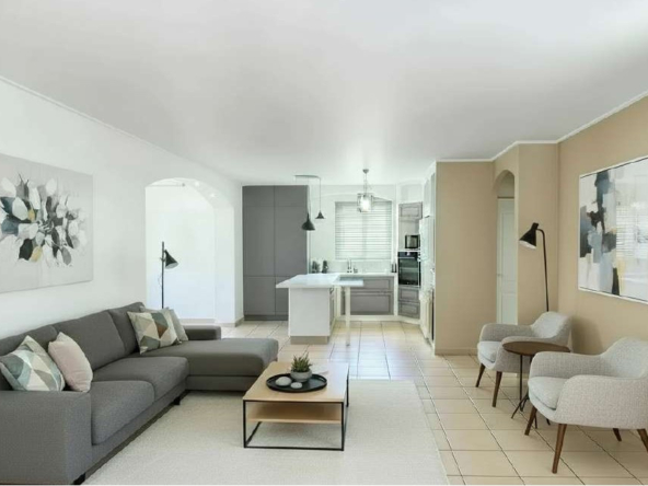 Pièce de vie 60 m2 : salon, salle à manger, cuisine ouverte équipée