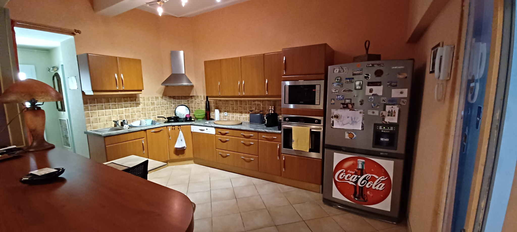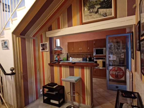 Cette maison, chargée d’histoire (construite avant 1948), bénéficie de beaux volumes et d’un confort moderne :