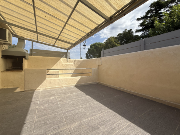 Une cour privative de 30 m2, sans vis-à-vis, comprend une partie couverte faisant office d’abri voiture ainsi qu’une cave pouvant servir de buanderie.