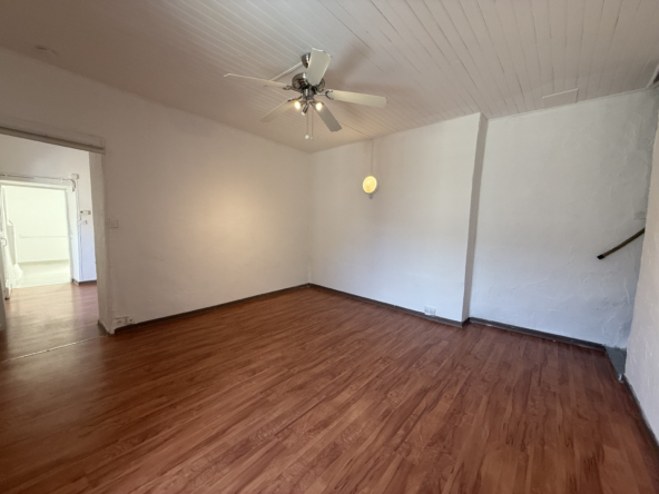 Le premier étage se compose d’une salle de bains avec WC et fenêtre, ainsi que d’une cuisine aménagée ouverte sur le salon. Cet étage bénéficie également d’un accès direct depuis l’extérieur.
