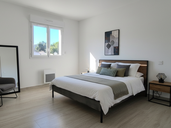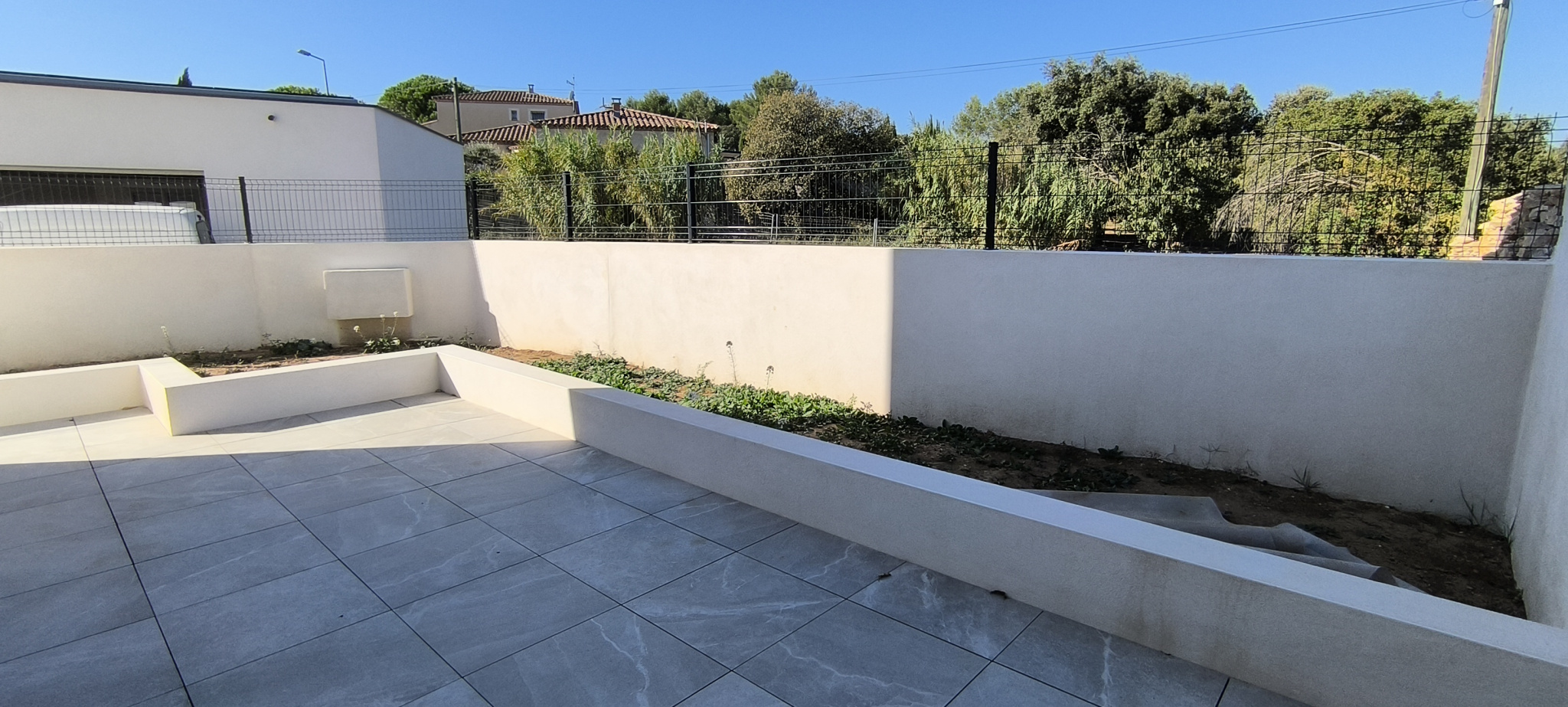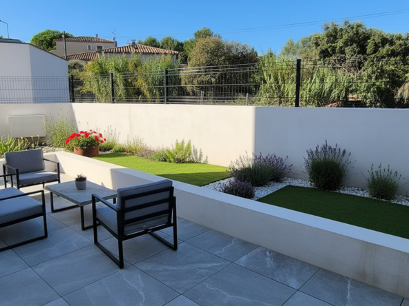 Point fort : maison neuve sous garantie décennale, quartier résidentiel, climatisation réversible, huisseries double vitrage, volets roulants électriques, pas de vis-à-vis, séjour lumineux, grand garage de 19 M2.