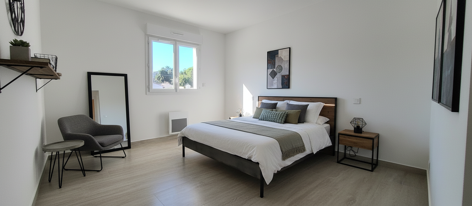 Ce logement n’a pas de cuisine installée, libre à vous de la choisir à votre gout. Cette maison neuve de 85 M2 et en cour de finition.