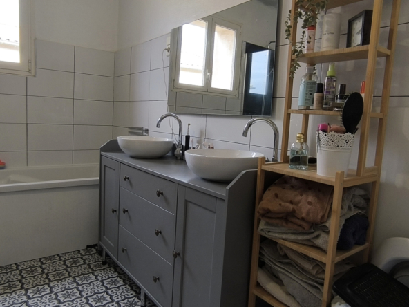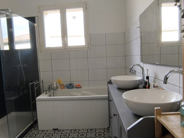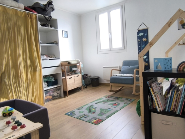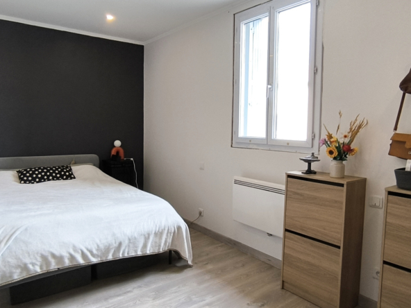 A l’étage, 3 chambres d’environ 14 m2, 17 m2, 10 m2, une salle de bain avec douche d’environ 7 m2, un WC. Cette maison de 117 m2 est équipée de doubles vitrages et de menuiseries PVC, le système de chauffage est assuré par des climatiseurs réversibles pour l’ensemble de la maison. Le logement profite d’une place de parking. Vous profiterez aussi d’une cour d’environ 45 m2.