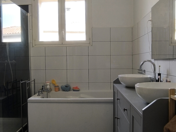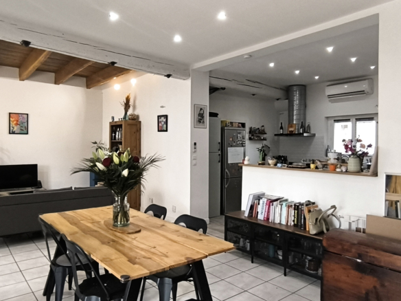 Point fort : centre du village, huisserie double vitrage, climatisation sur l’ensemble du bien, une cour d’environ 45 m2, cuisine récente et équipée. Pas de travaux à prévoir. Estimation des coûts annuels d’énergie du logement entre 1380 € et 1910 €, les performance énergétique et climatique C indice 125 et A indice 4.