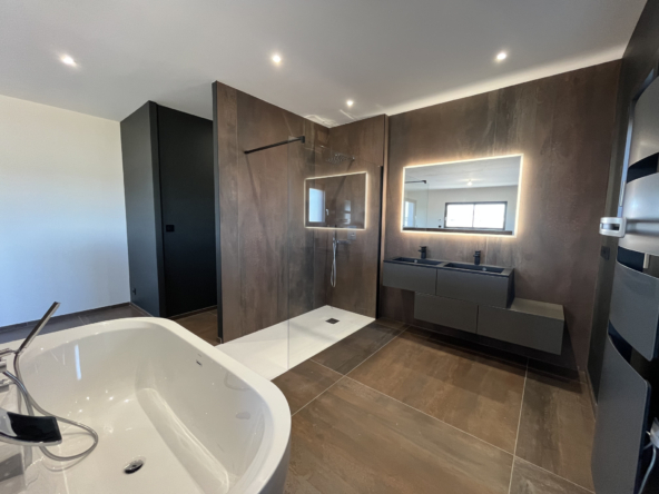Climatisation réversible gainable, ouverture des volets roulants par domotique.