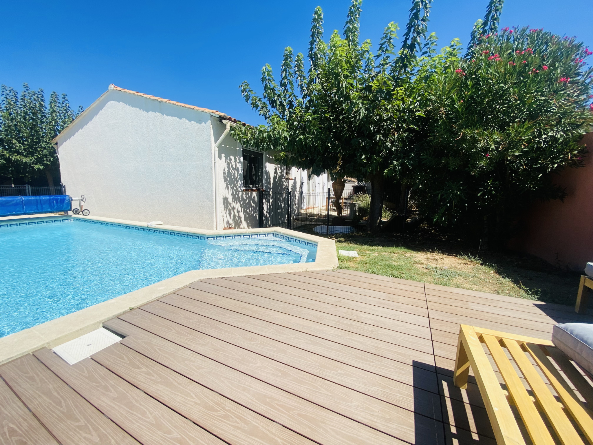 Exclusivité Nemausa Immobilier. A Nîmes, à 10 mn à pied du CHU Carémeau, nous avons le plaisir de vous proposer à la vente cette villa en plain pied, rénovée avec goût et possédant de nombreux atouts. Tout d’abord, située au calme, elle est proche de la ligne de TramBus, Elle a été réagencée par ses propriétaires actuels en 2018 afin de moderniser l’habitat datant de 1987. Très peu de travaux sont à prévoir. En plain pied, elle présente une distribution limpide, avec un SAS d’entrée, une pièce principale de 41 m2 regroupant une cuisine moderne totalement équipée et aménagée, et un espace salon/salle-à-manger s’ouvrant sur une terrasse exposée plein Sud. Le coin nuit se compose de 3 chambres, une salle de bains, un wc et un dégagement avec placards. Un garage de 17 m2 avec mezzanine jouxtant une buanderie bien pratique vient compléter ce descriptif intérieur. En ce qui concerne l’extérieur, une piscine au sel de 7×3,5 m vous permettra de profiter pleinement de notre climat méditerranéen. A l’avant de la maison, vous pourrez stationner facilement 2 véhicules ou aménager cet espace en aire de jeux, jardin ou encore potager. La maison possède son propre forage, relié à un arrosage automatique. Les menuiseries sont en pvc double vitrage avec volets roulants automatisés à l’exception du séjour ou les volets sont en bois. Des moustiquaires ont été installées sur toutes les ouvertures. La toiture est en bon état et la chaudière date de 2011 et est entretenue chaque année. A voir absolument ! Informations supplémentaires : taxe foncière de 1 649€ par an, classe énergétique C, assainissement tout à l’égout.